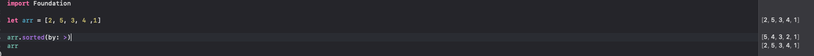 .sort(by: >) 나 .sorted(by: >)를 사용하면 된다.