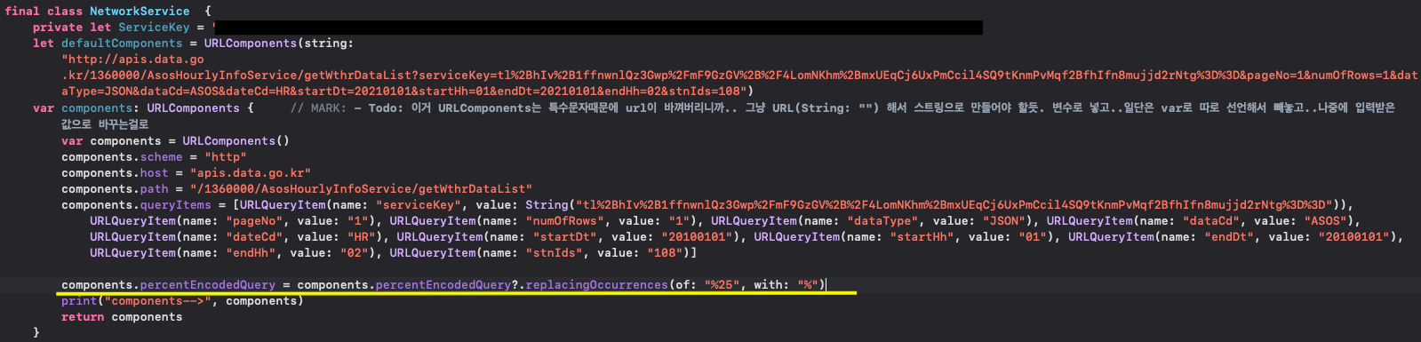 1. url이 제대로 나타나지 않는다. (URLComponents와 URLQueryItem이용하여 만듦.)