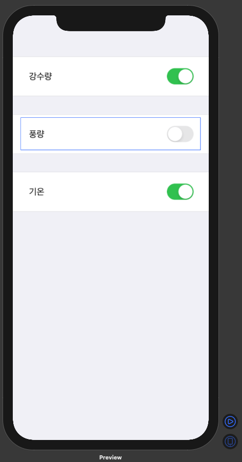 NavigationLink(destination: DetailSetting() ){ // 강수량, 풍량 등을 toggle 스위치로 조절하여 디바이스 화면에 해당 정보 표시.
