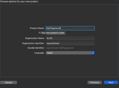 Product Name에 프로젝트 제목을 입력해 준다. 나는 MyPlayground라고 적었다.