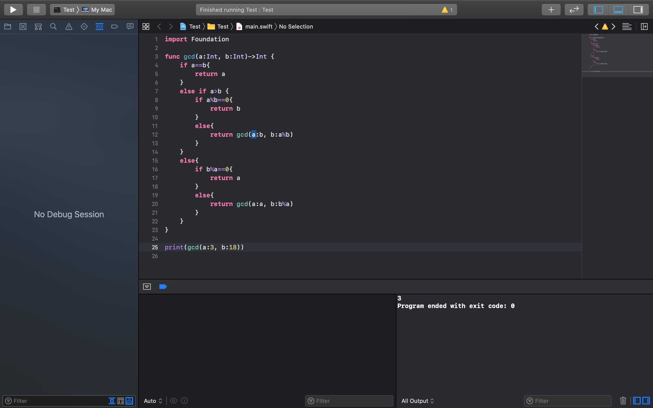 유클리드호제법을 이용한 gcd를 Swift로 구현한 코드.