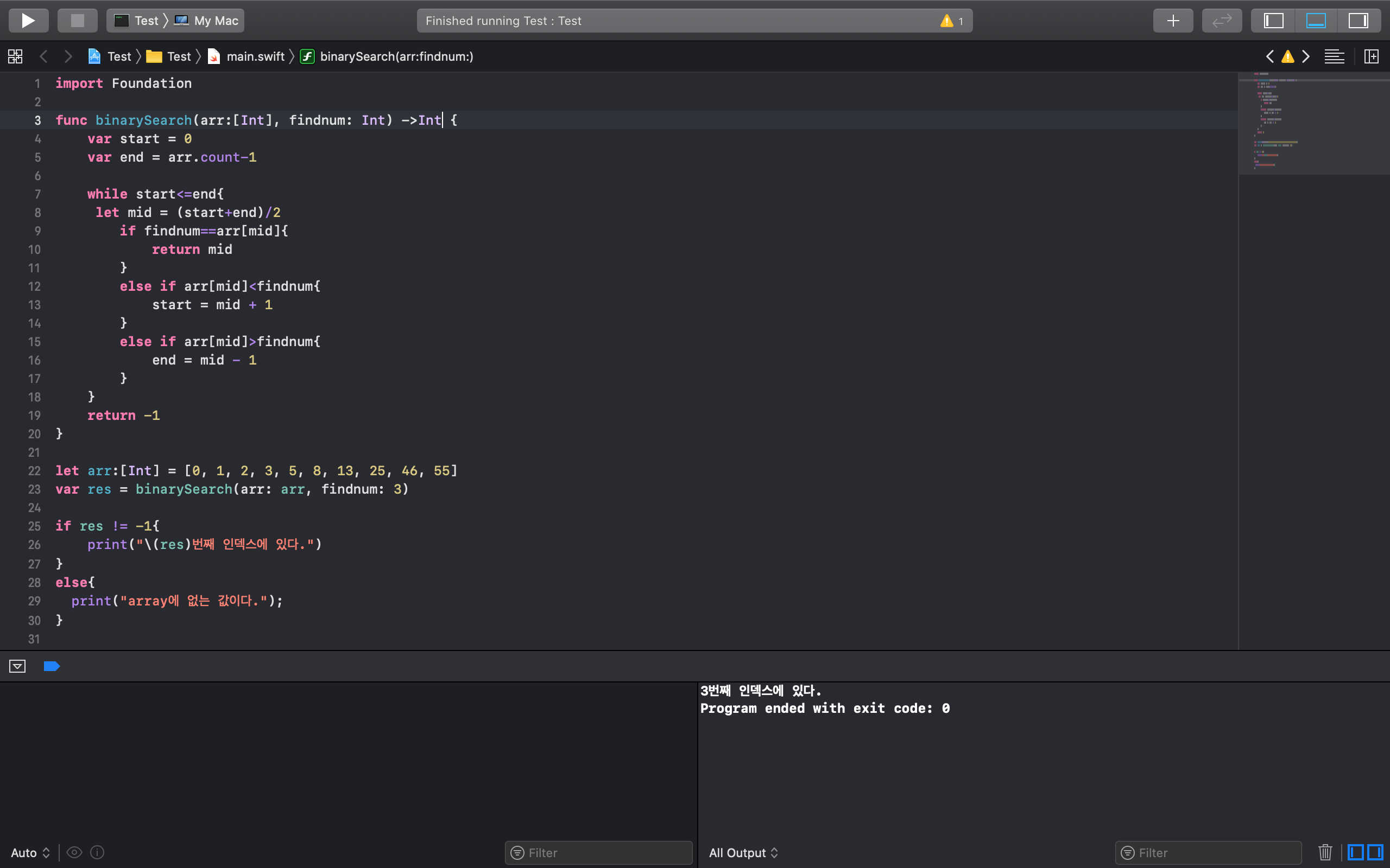 [스위프트:알고리즘] 이진 탐색[2 / 3]: Binary Search: 이진 탐색: 반복문, 재귀호출로 구현하기