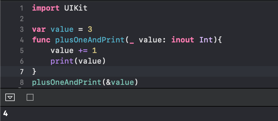 함수 안에서 값을 바꿔주려면 "inout" 를 자료형 앞에 써야 한다.