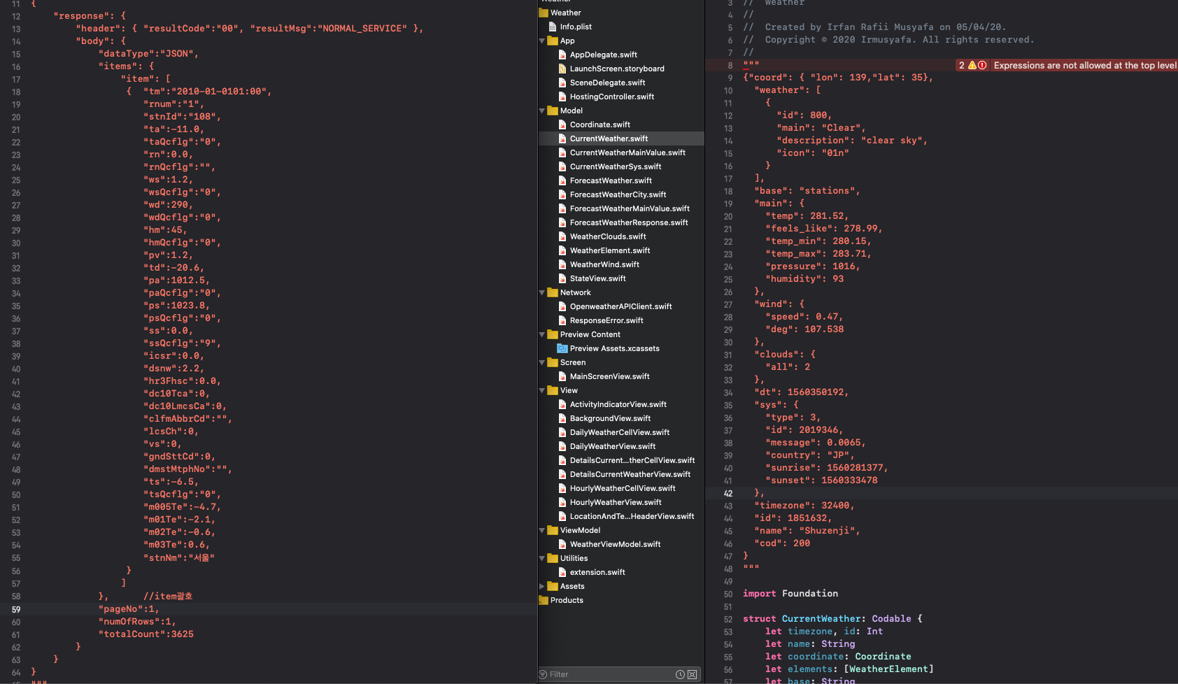 [Swift] [SwiftUI] 기상청 API 이용한 날씨 앱 만드는 일지