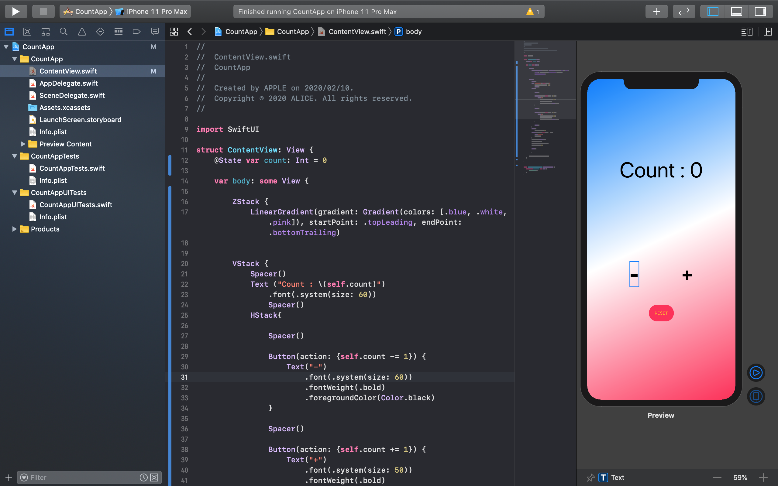 [Swift] [SwiftUI] SwiftUI를 사용한 간단한 카운팅 앱. 카운터 만들기.Simple counter (counting app) using SwiftUI.